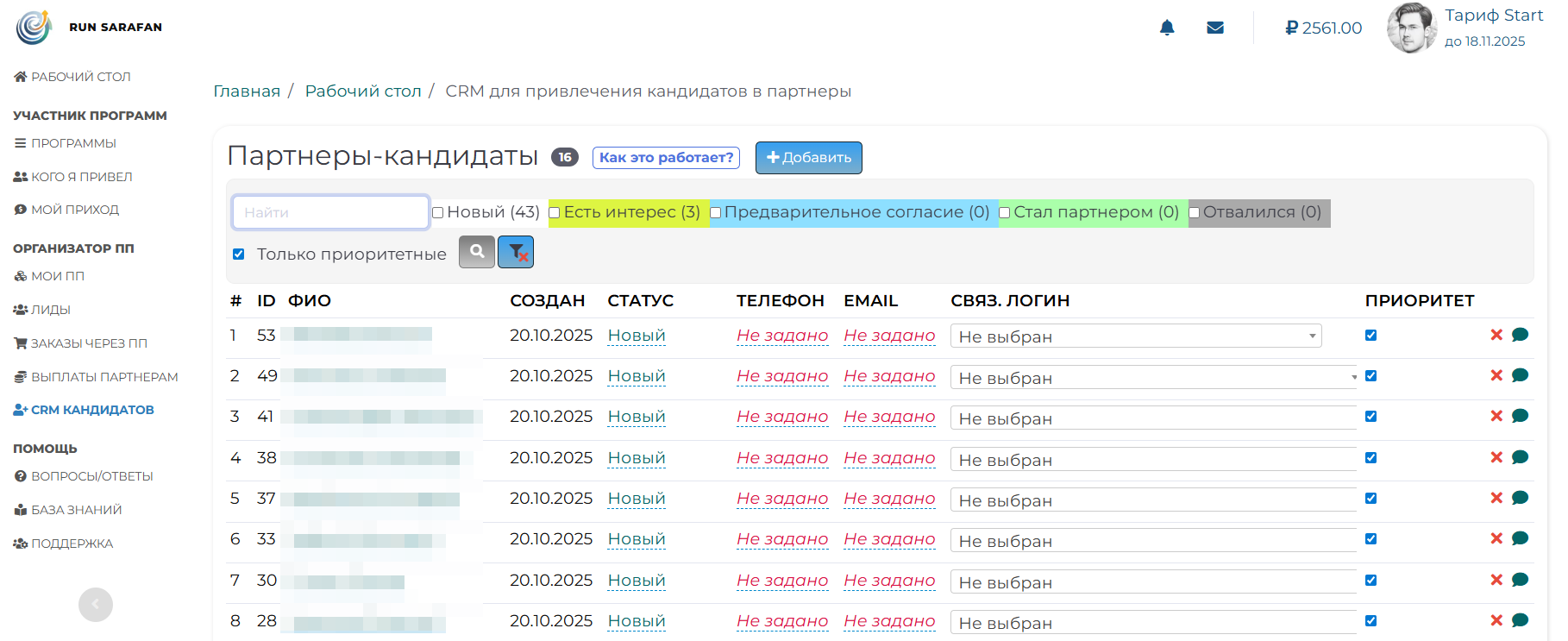 Как вести обработку кандидатов в партнеры